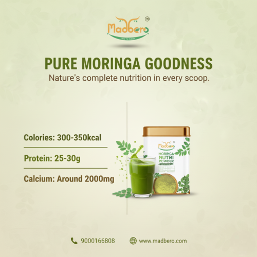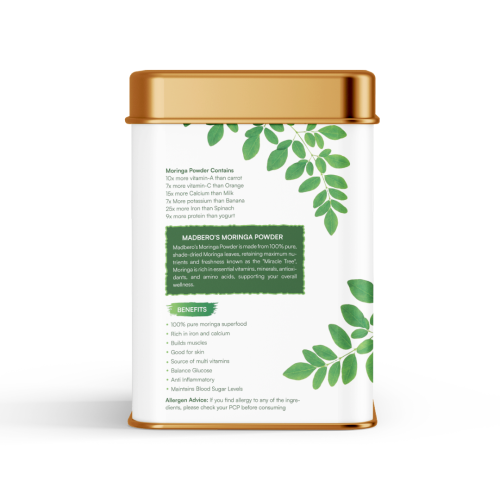 Moringa Powder from Madbero is a pure, potent source of essential nutrients derived from the miracle tree.