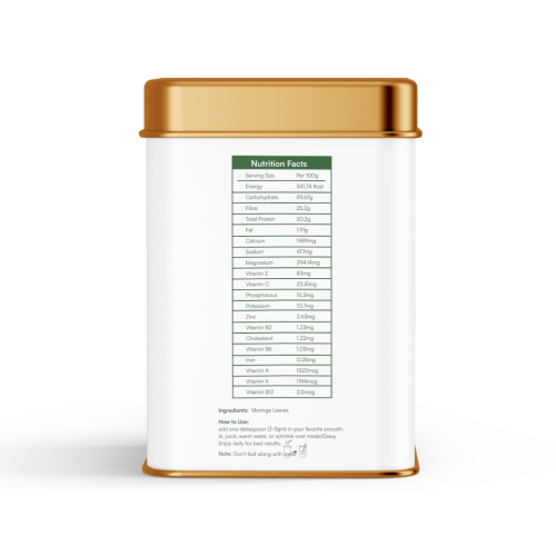 - 100% Pure Moringa Leaves: Sourced from premium quality moringa, finely ground to retain its rich nutrient profile.